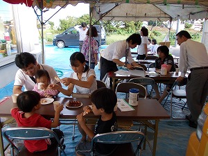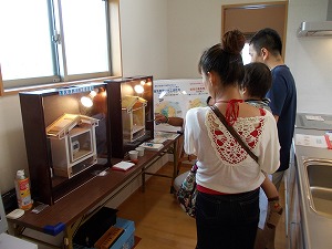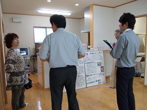 初日は台風の影響で朝から怪しい雲行きでした。天気予報でも大雨を伝えていました。開始時刻になるかならないかで雨が降り出し、そして大雨に!お客様もスタッフもびしょびしょになってしまいました!それでも家の中では濡れた服を拭き終わったお客様が、熱心にバリアフリー住宅の作り方をじっくり見ておられました。2日目は天候に恵まれ、残暑を感じるくらいでした。初日に増して多くの方にご来場頂きました。本当にありがとうございました。