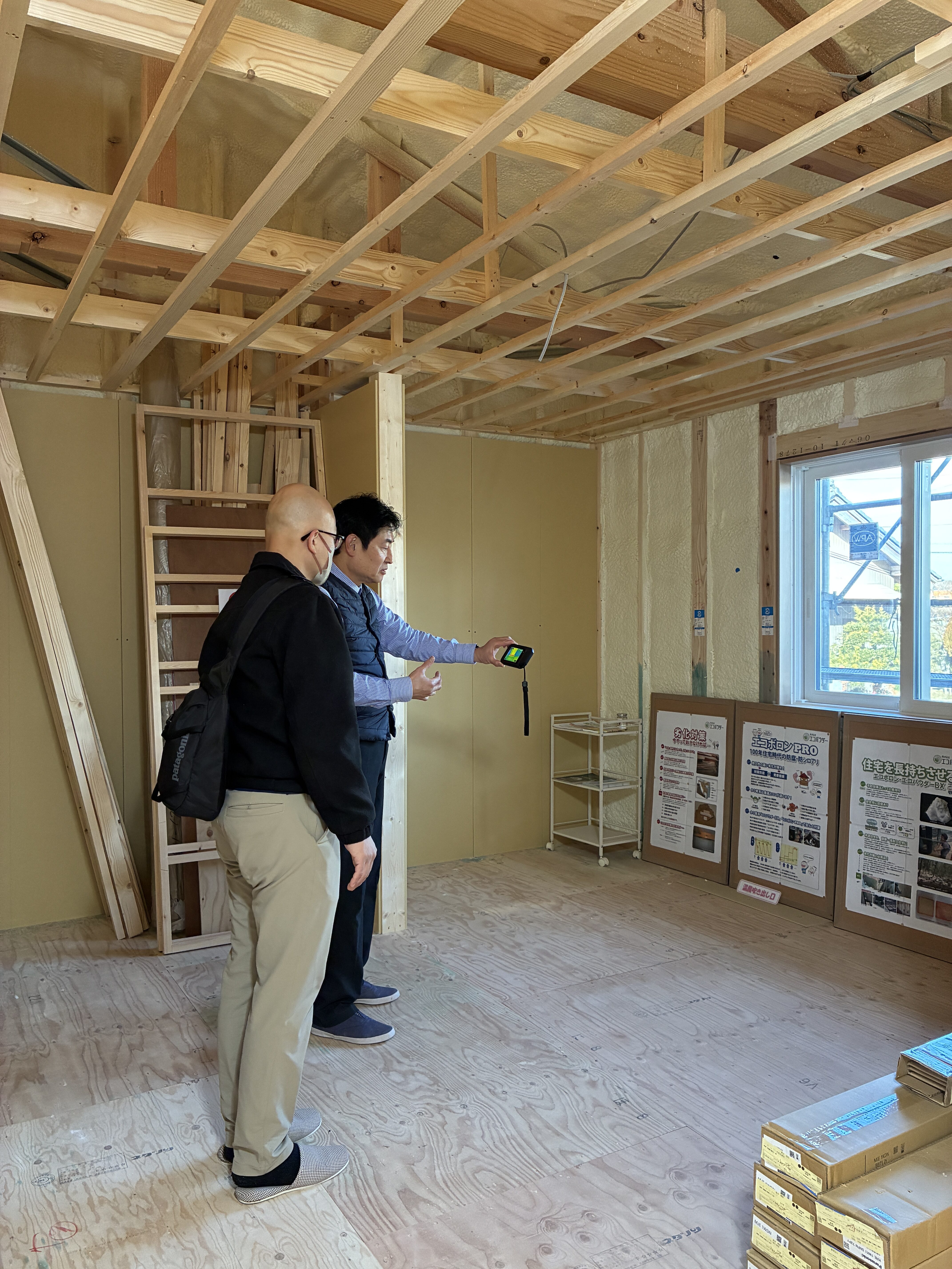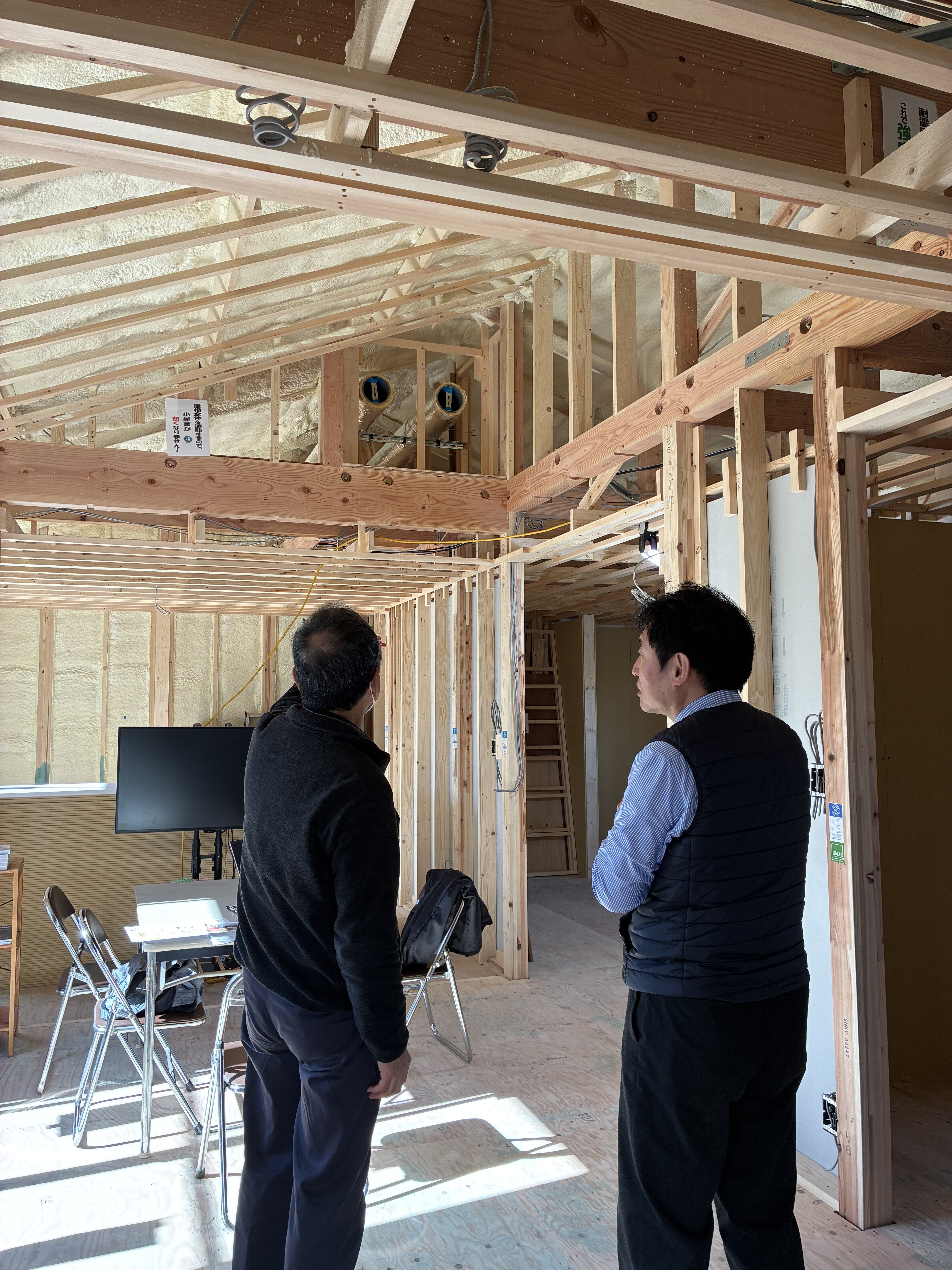 参加された方に、耐震性・耐久性・断熱性など基本性能を支える構造のポイント、使用されている素材、施工の質や技術等を確認していただきました。