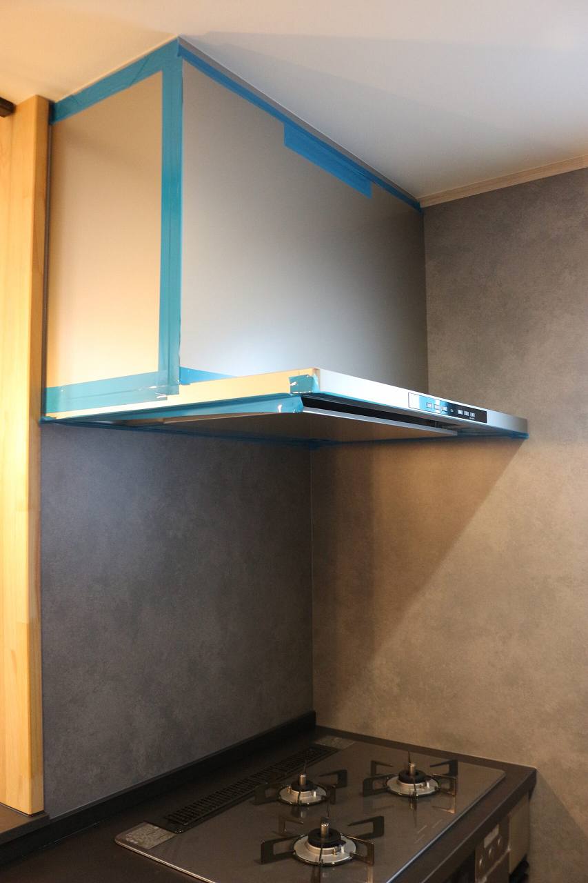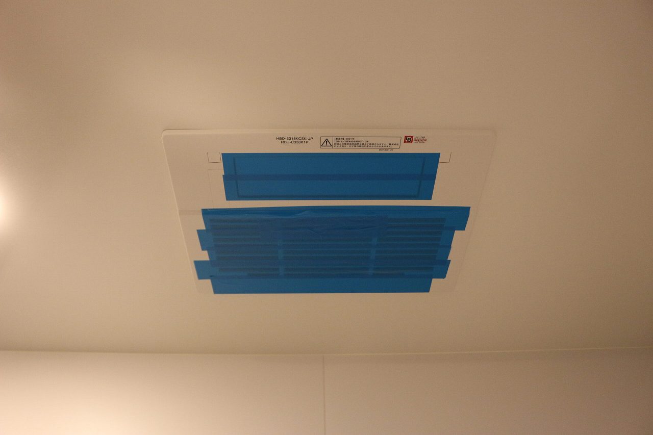 換気扇や給気口のような意図した隙間を塞ぐために目張りをしていきます。