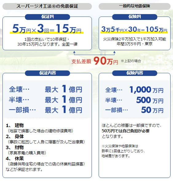三番目の理由は、地震保険よりも手厚い「免震保証」最長30年が付保されていることです。
