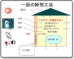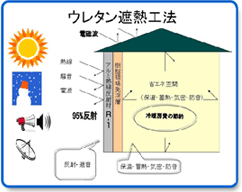 アルミ熱線反射材は夏の熱線を反射し、硬質ウレタンは冬の保温効果及び結露対策に優れています。ウレタン遮熱工法は、この2つを複合させ、夏の暑さにも、冬の寒さにも対応できるよう開発した工法です。