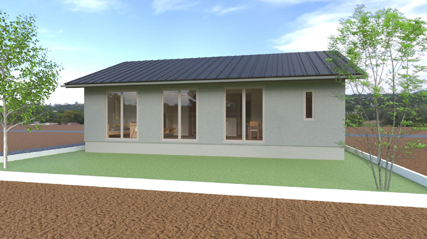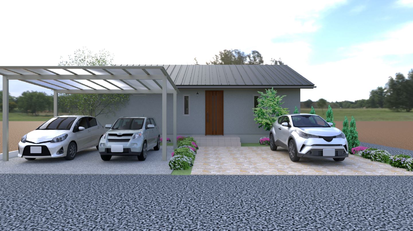 27坪のコンパクトな平屋。外壁には、砂などを塗料に混ぜたモルタル外壁用意匠性塗材である「ジョリパット」を使用しています。