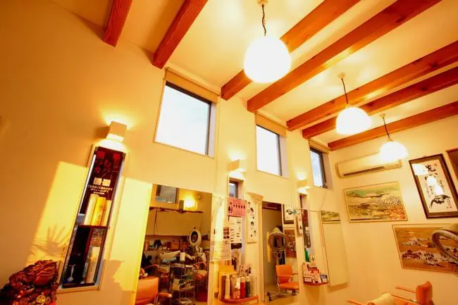 店舗と住宅が併用なので、店舗部分では西日をカットすることと天窓を付けること、美容室なので外からは見えないけれど、中にいるお客さんに圧迫感を与えないようにすることや温かみを出したくて、天井の梁をあえて見える形にしてもらうようにこだわりました。 住宅部分では、家族全員が集まれるオープンな空間にしたいなということで、キッチンからリビングが見渡せて暖かい感じになることにこだわりましたね。 子供たちもリビングで勉強するスタイルなので、安心して家族がくつろげる空間にしてもらいました。また店舗を借りていたときは和室が無く、着付けのお客さんは畳を持ってきて、パーテーションで見えないように区切って行っていたので、和室が絶対欲しいということもこだわった部分です。