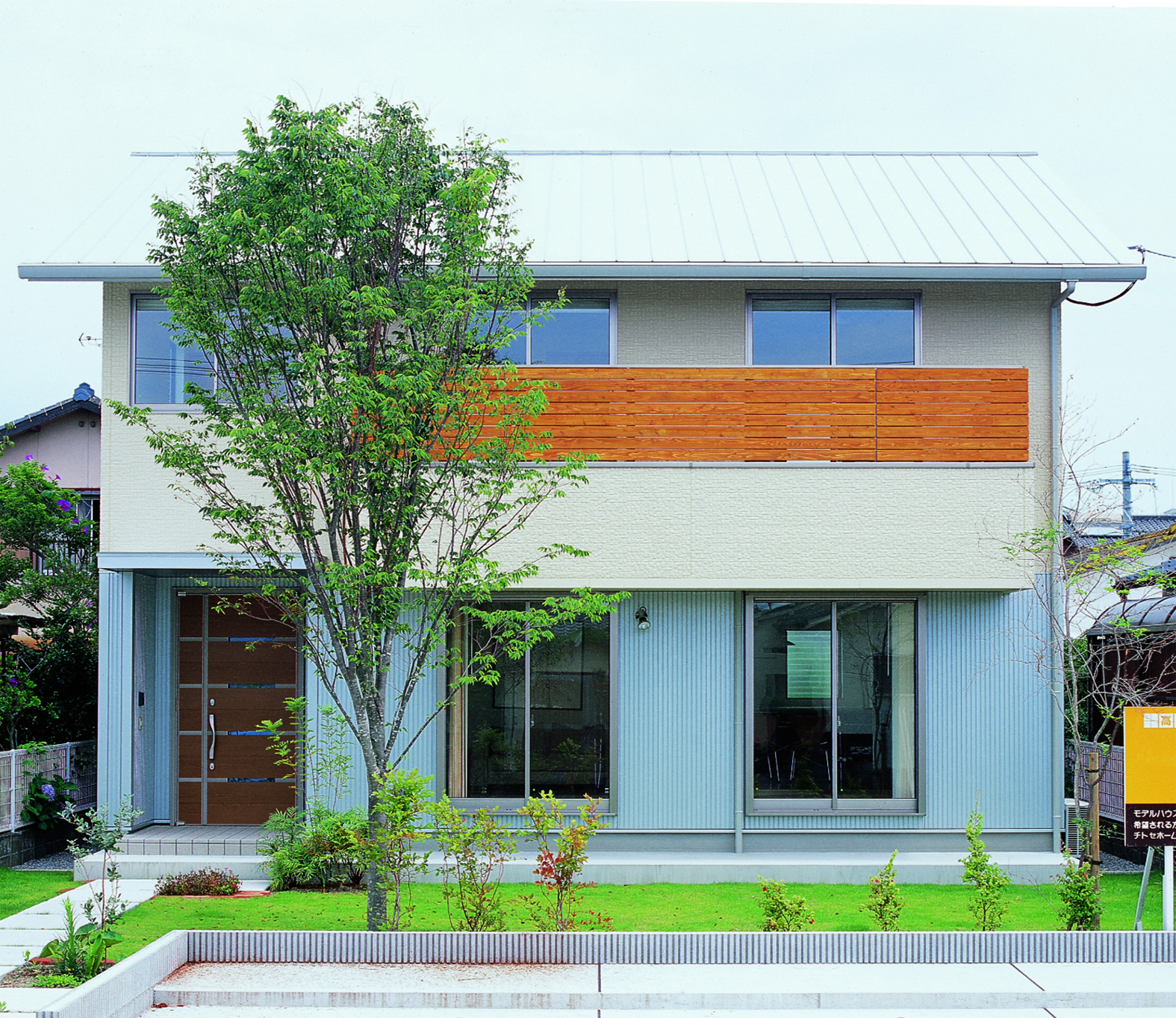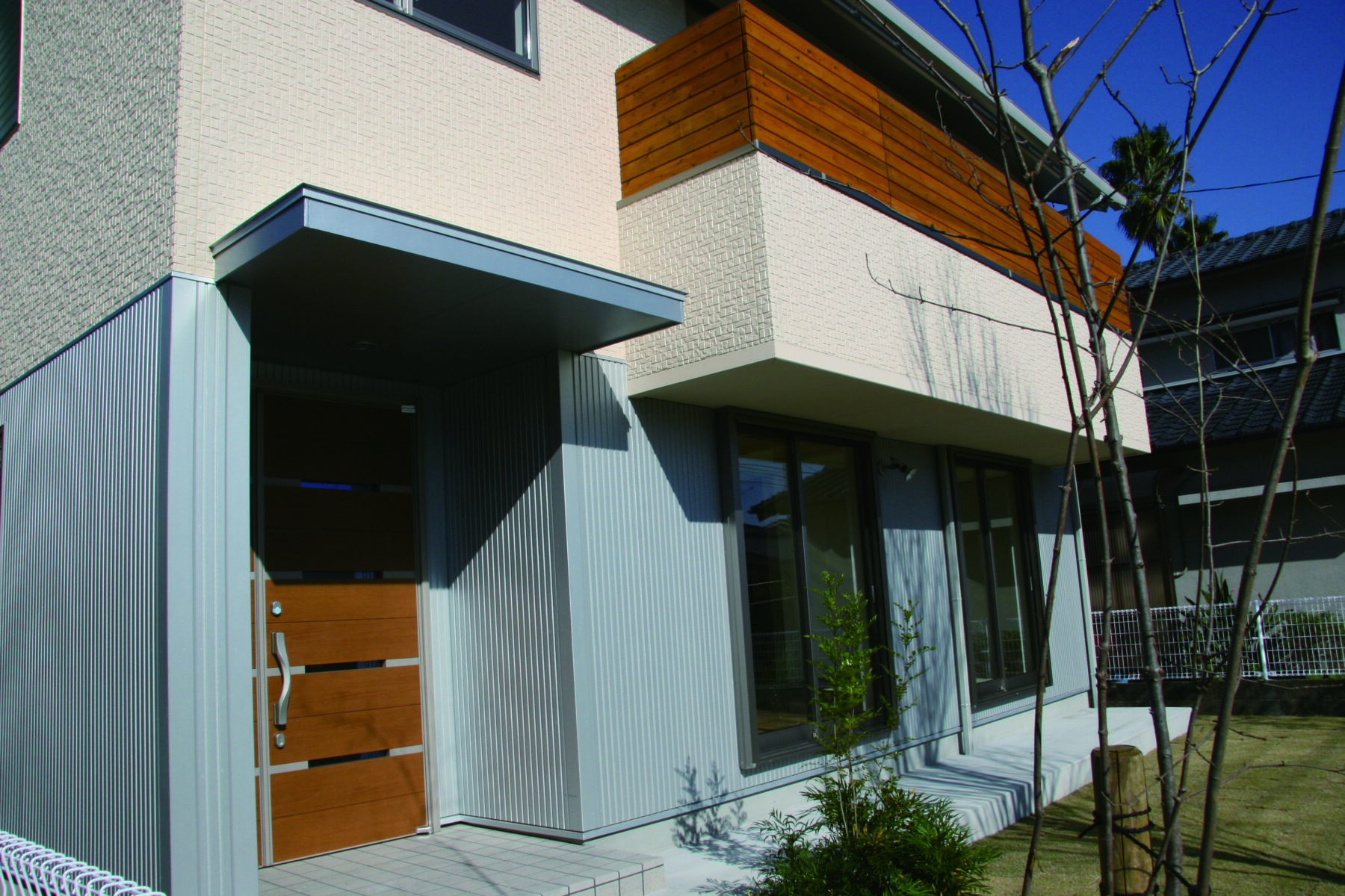 5.バルコニーの木製ルーバーが温かみのある表情を演出します。