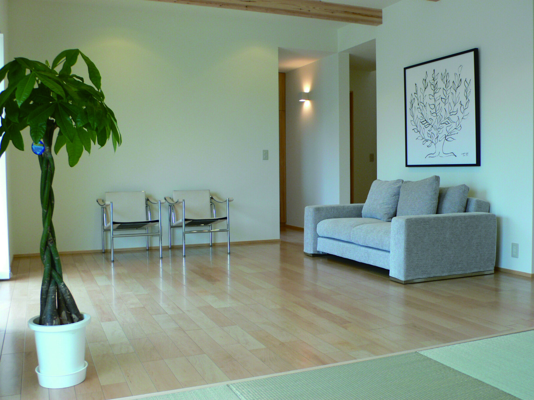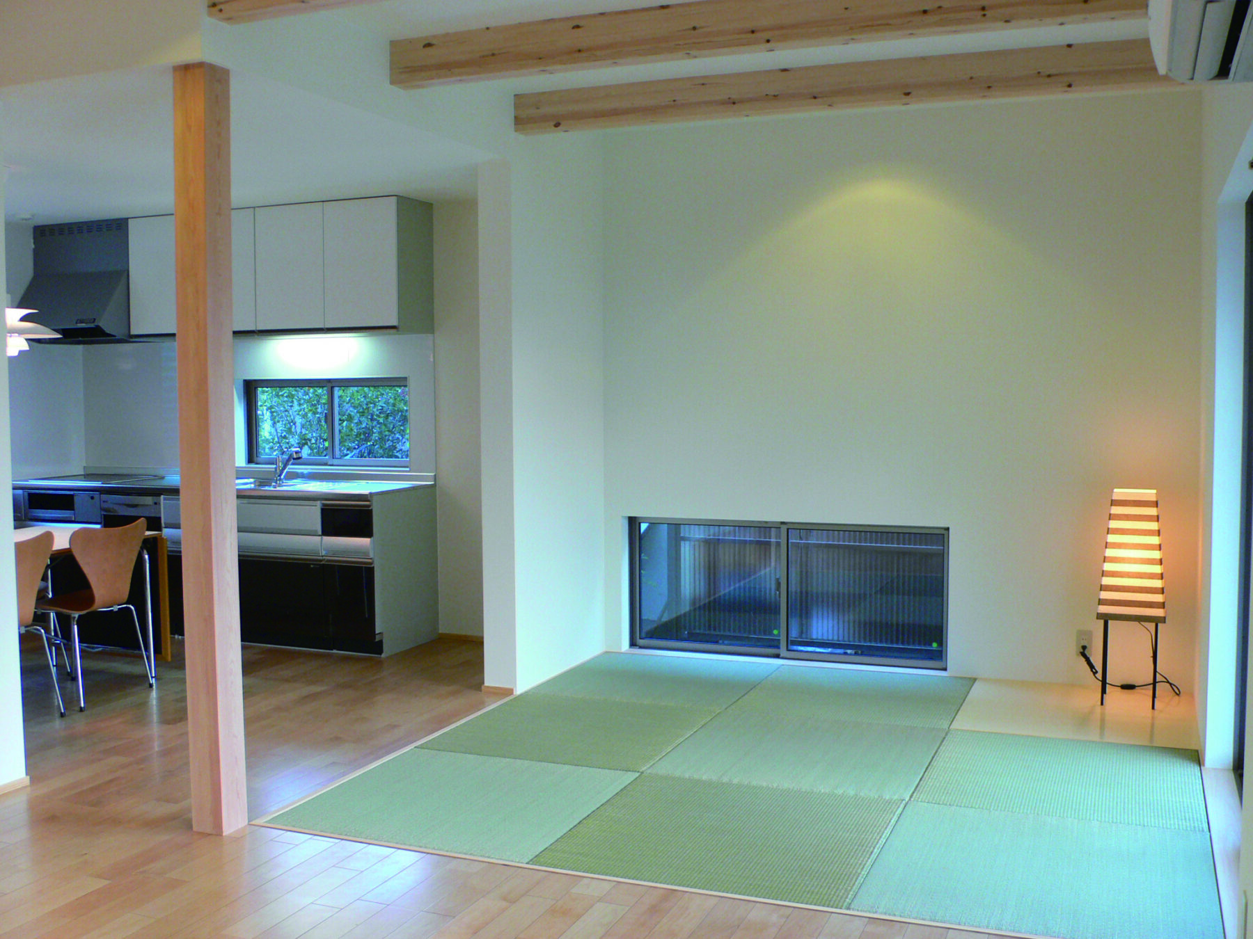 2.リビングの一角に設置した畳コーナーは、腰掛けたり寝転んだり出来る寛ぎスペース。
