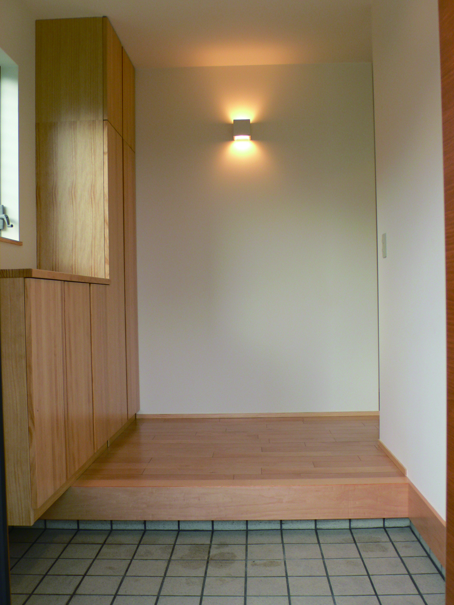3.暗くなりがちな玄関ホールもルーバー窓を設け、通風と採光を確保。