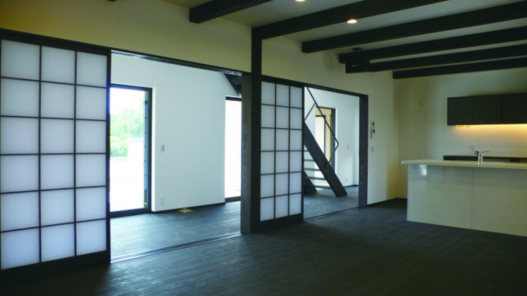 3.床と同色の梁や障子の引戸が、和の落ち着き感を表現しています。