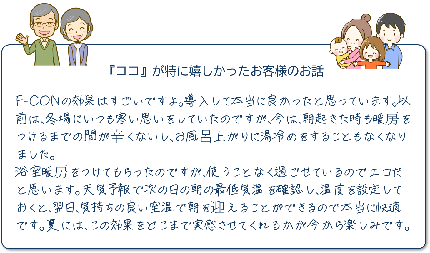F-CONを取り入れた住まいです。将来のことを考えて、バリアフリーになっています。もし車椅子を使うことになったとしても大丈夫なように段差をなくし、扉は引き戸になっています。