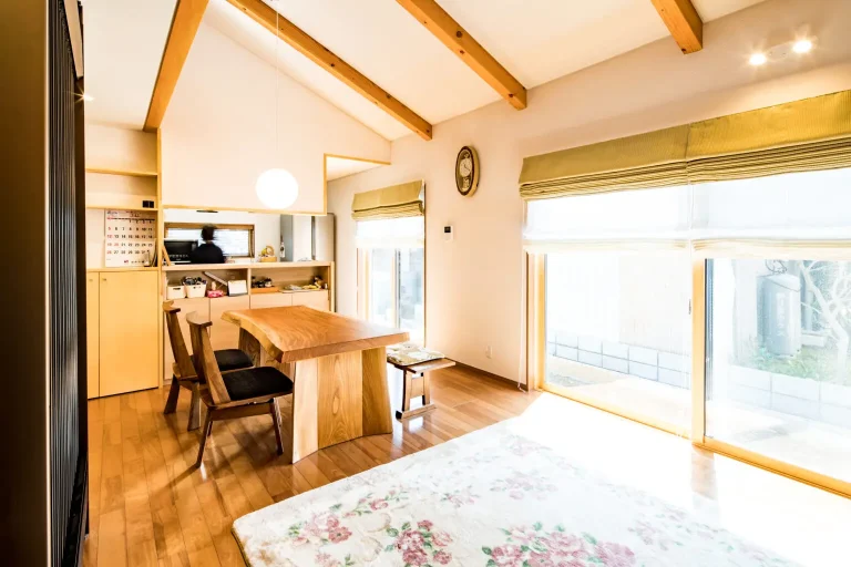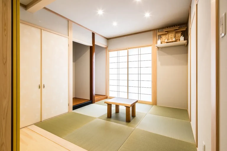 琉球畳が和室全体の空間をおしゃれに着飾ってくれます。畳の部分と木材の部分を分けるとまた心地よいお部屋に。