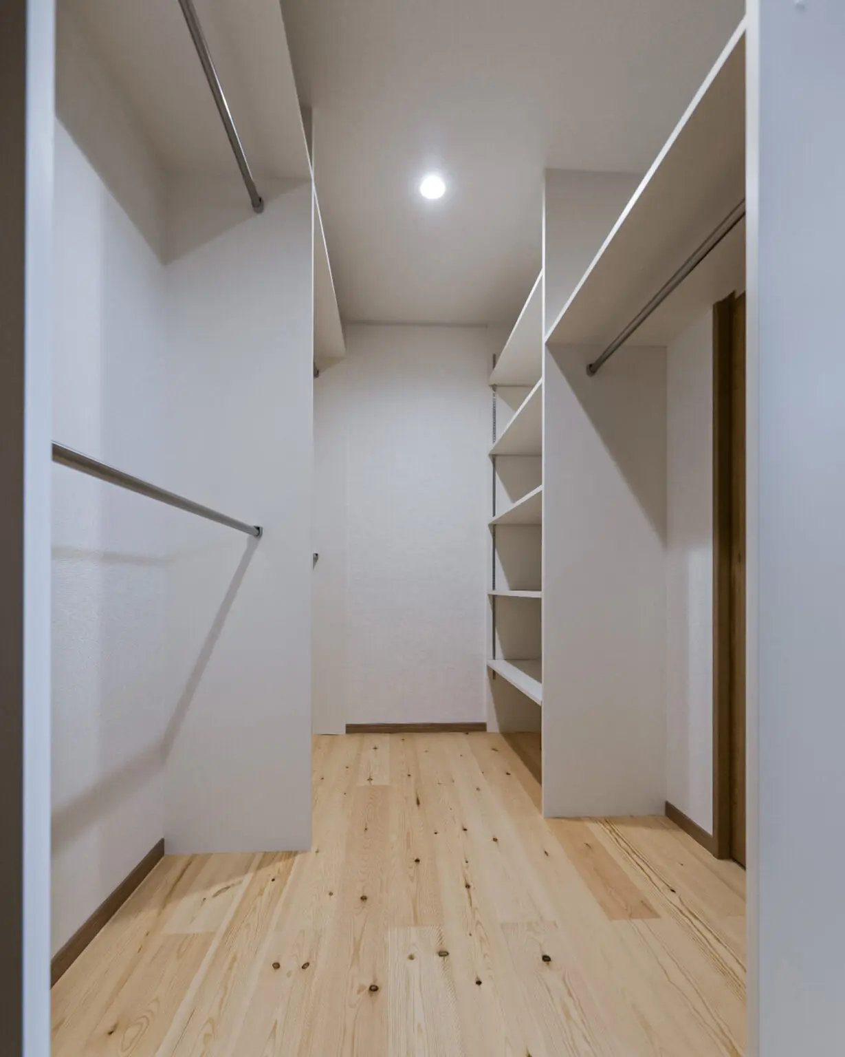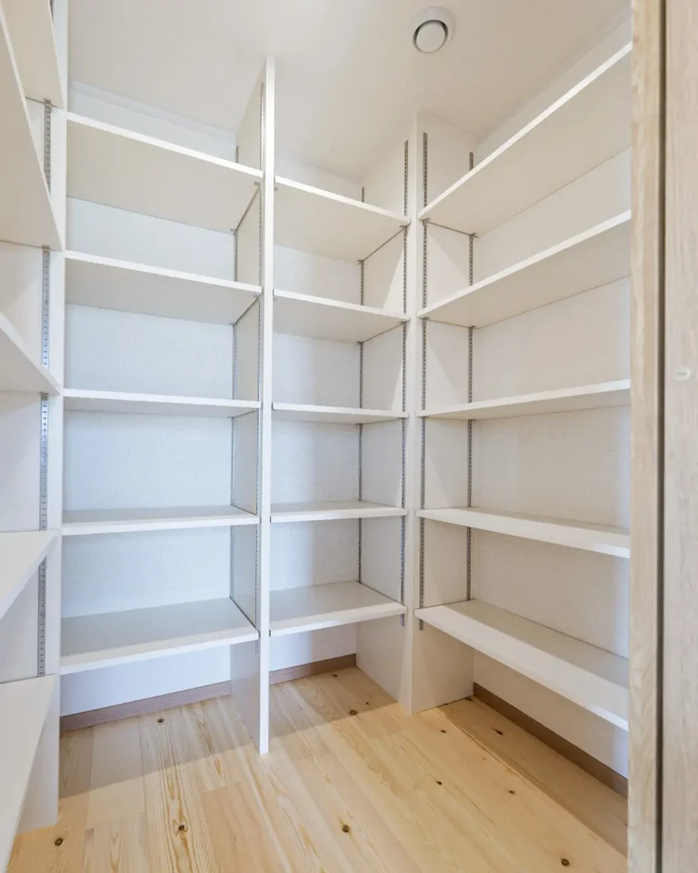 壁一面に収納ができるパントリー。可動棚なので、収納の仕方も自由自在です。