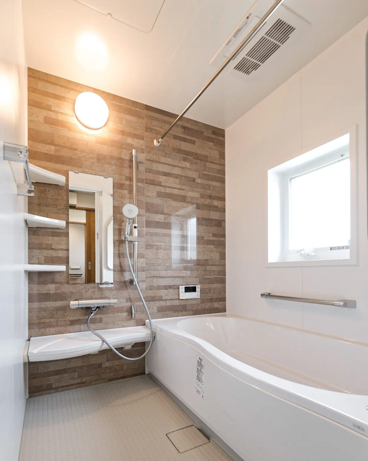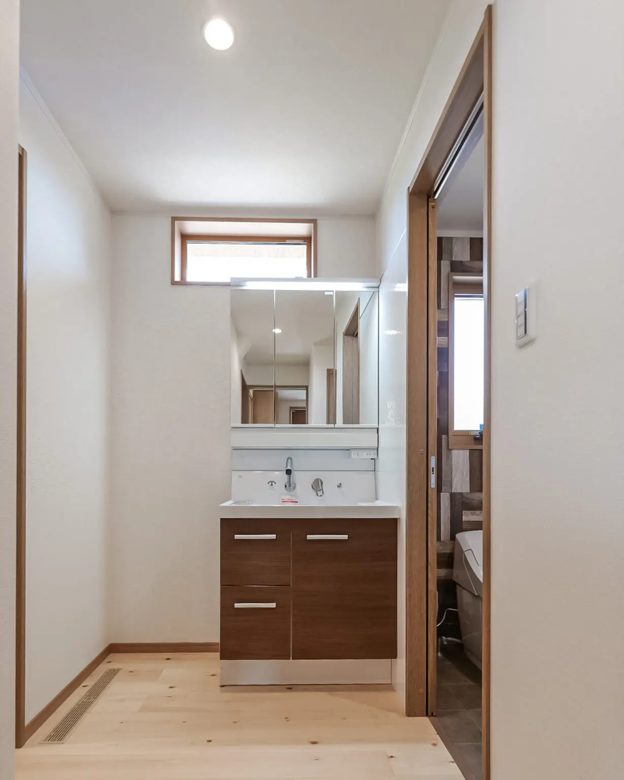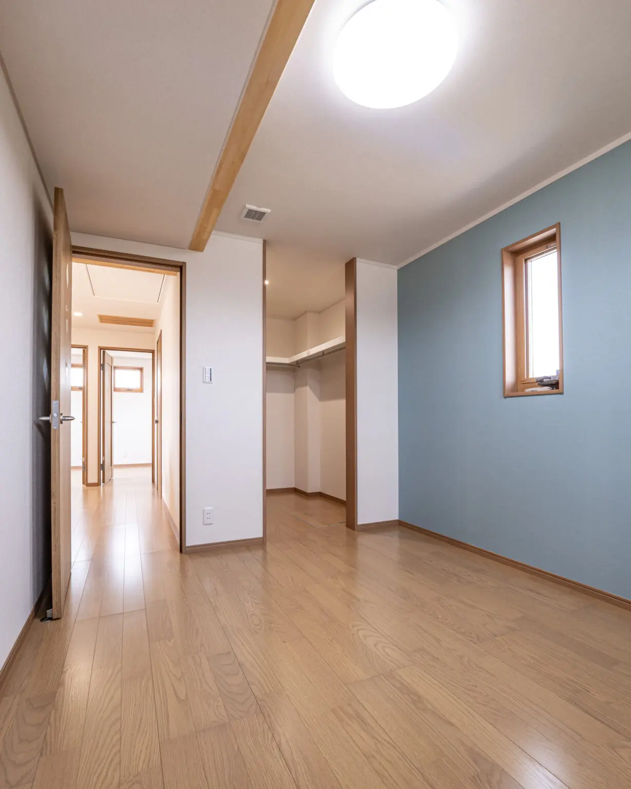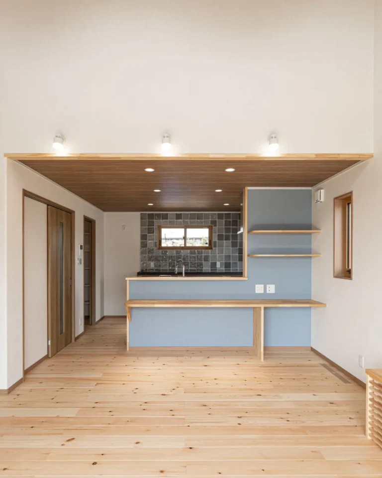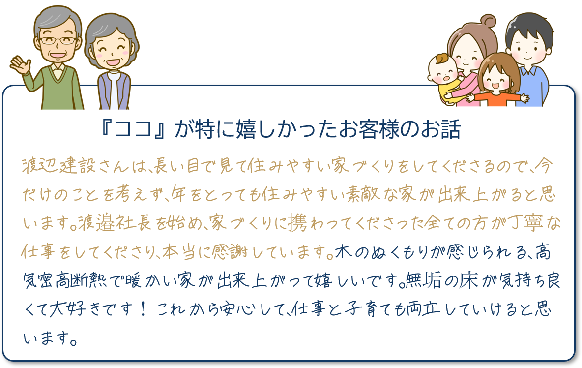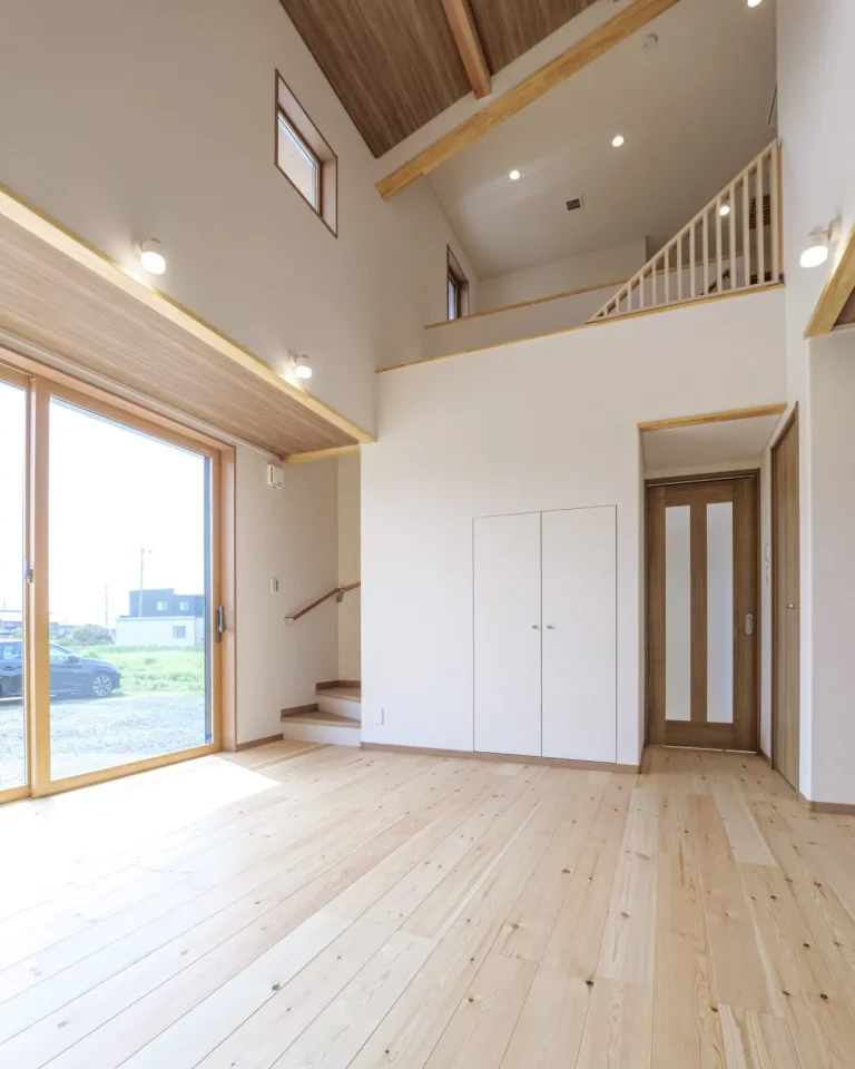 お施主様がずっと憧れていたという、吹き抜けがあるお住まいです。全館冷暖房(床下&小屋裏エアコン)を採用しているので、一年を通して健康で快適に過ごすことができます。子供室は、お子さまが大きくなったら間仕切りを付けて、各々が一人部屋として使用することもできるようになっています。2階の廊下にスタディスペースが設けられていたり、子育てもしやすいお家になりました。