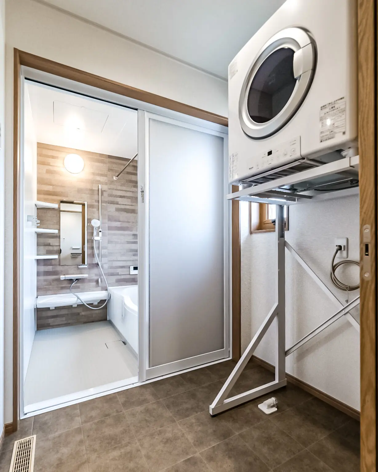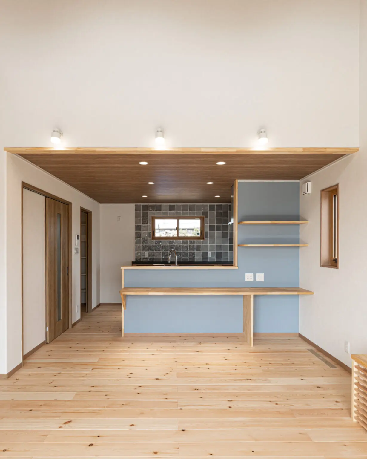階段下収納の扉がクロス貼りなので、空間に溶け込んでいますね。