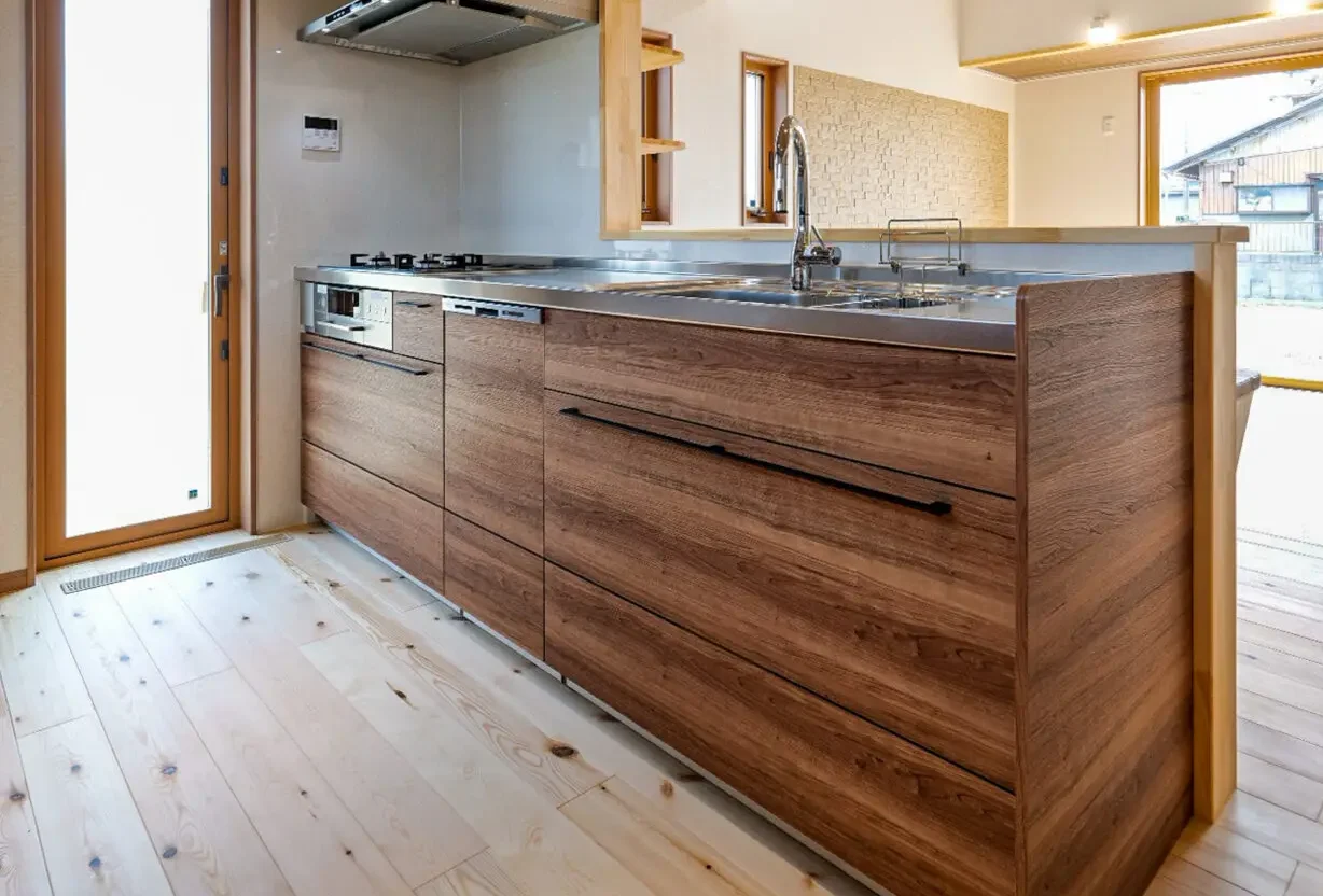 木目調のシンプルなキッチンは、使い勝手も抜群です。