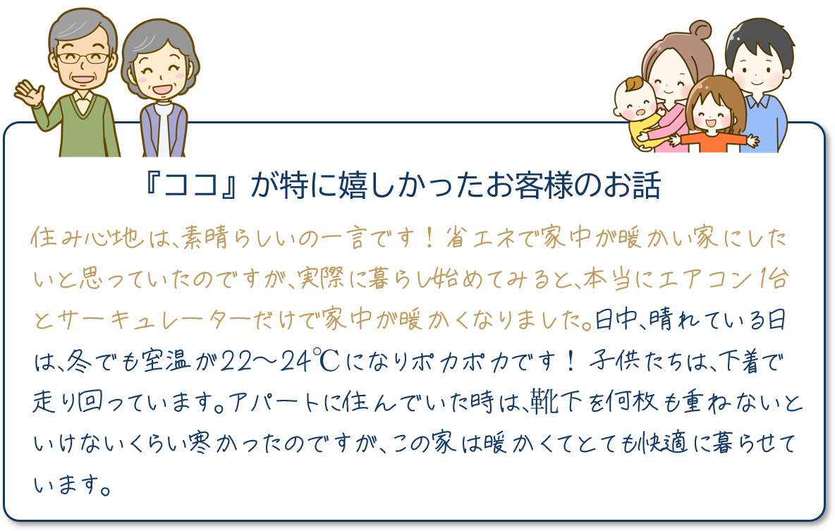 子育て世代のご夫婦とお子さま3人の家族5人で暮らすお住まいです。育ち盛りの3人のお子さまたちがのびのびと暮らせる家にしたいというお施主様の願いが詰まっています。高気密高断熱で高性能な家を建てることは、健康で快適な暮らしを実現し医療費の削減にもつながり、子育てや家事が楽になります。